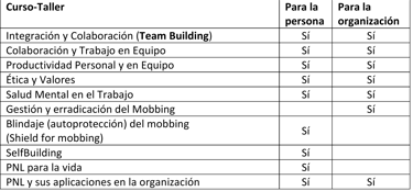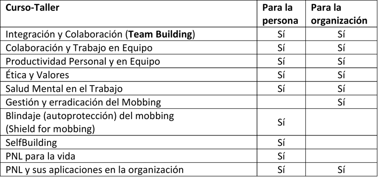Programas y Talleres para el Desarrollo de las Personas como factores de crecimiento y competitividad de las organizaciones.